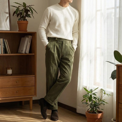 Men’s Classic Pleated Tapered Trousers | Retro